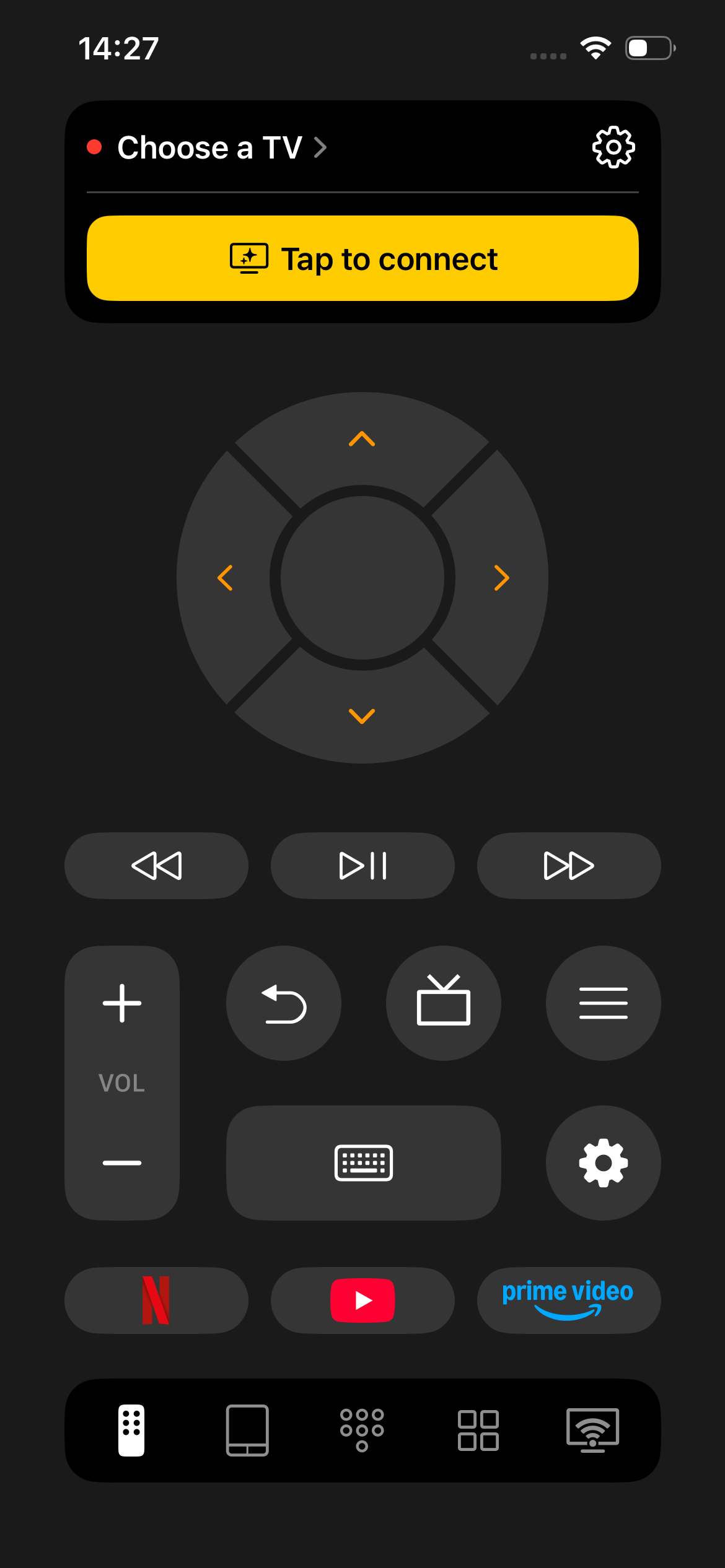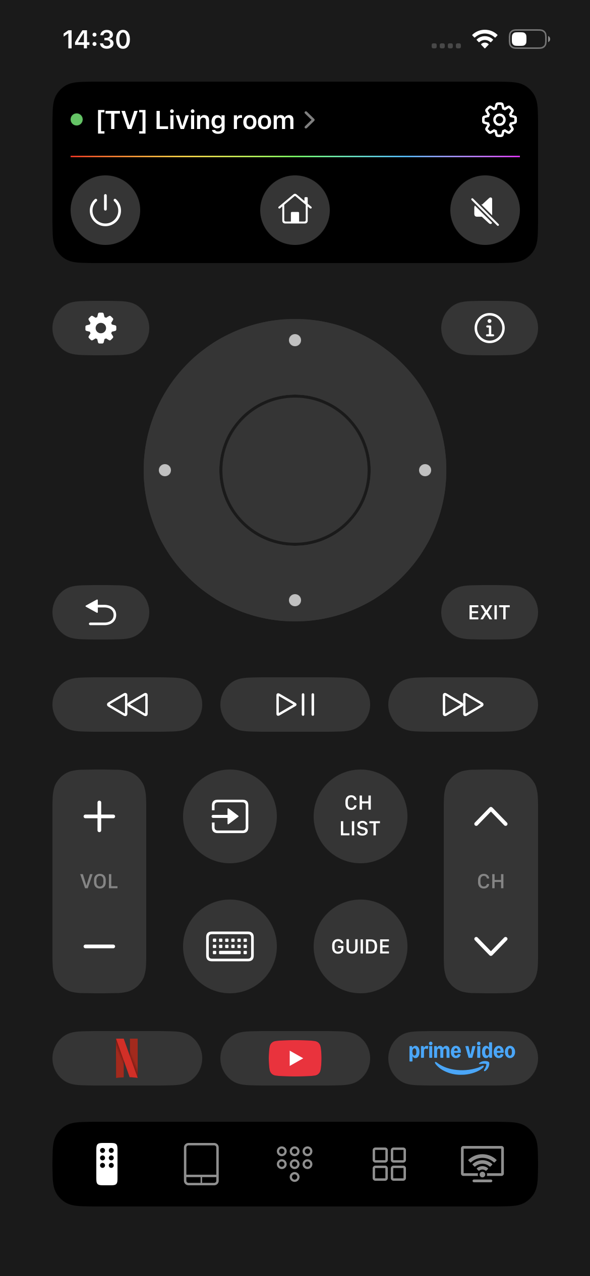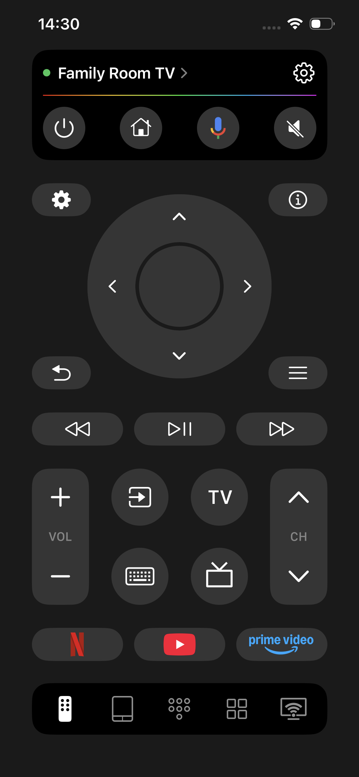 you can start controlling your TV with buttons, touchpad, or launch apps by tapping the corresponding button on the tab bar.