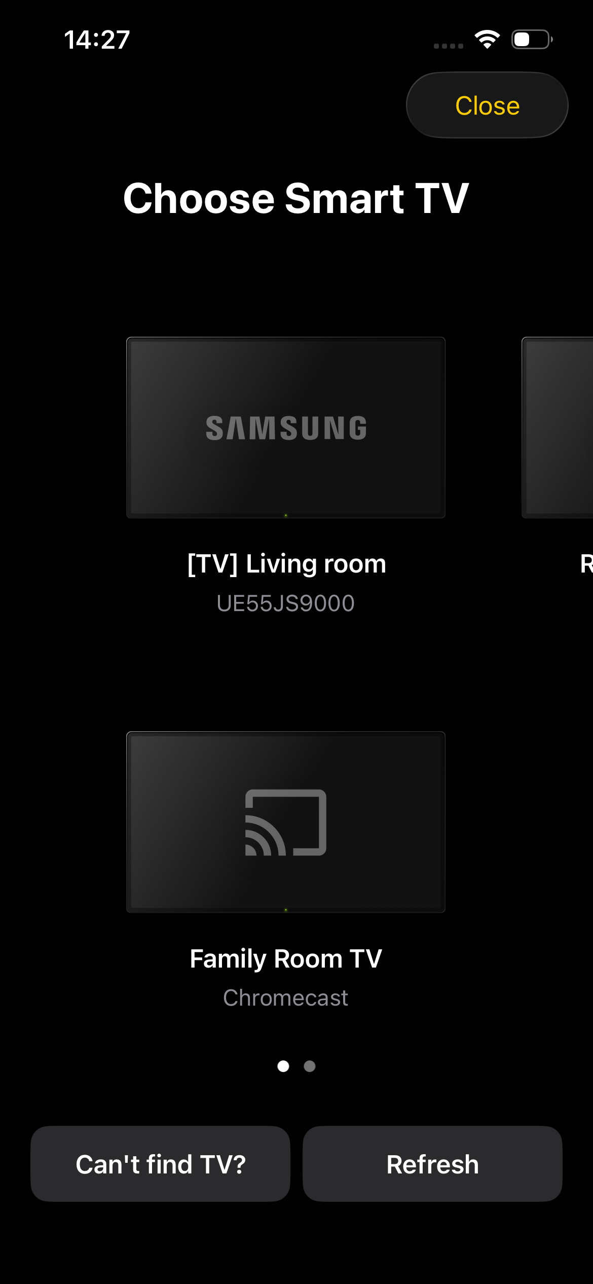 If you don't need to change devices, then tap the “Close” button and continue with the currently selected TV.