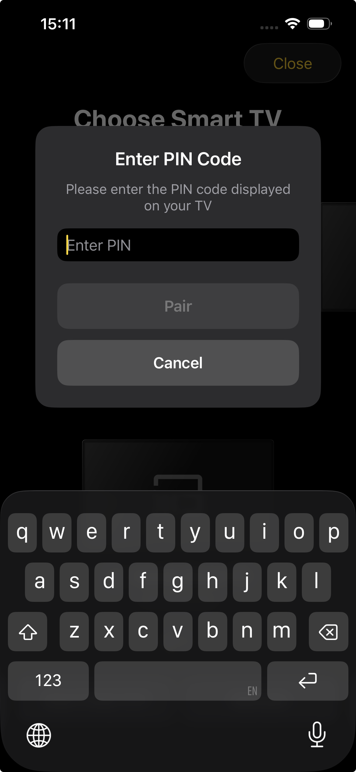 At the same time, a window will appear on your iPhone where you need to enter the pairing code shown on your TV.